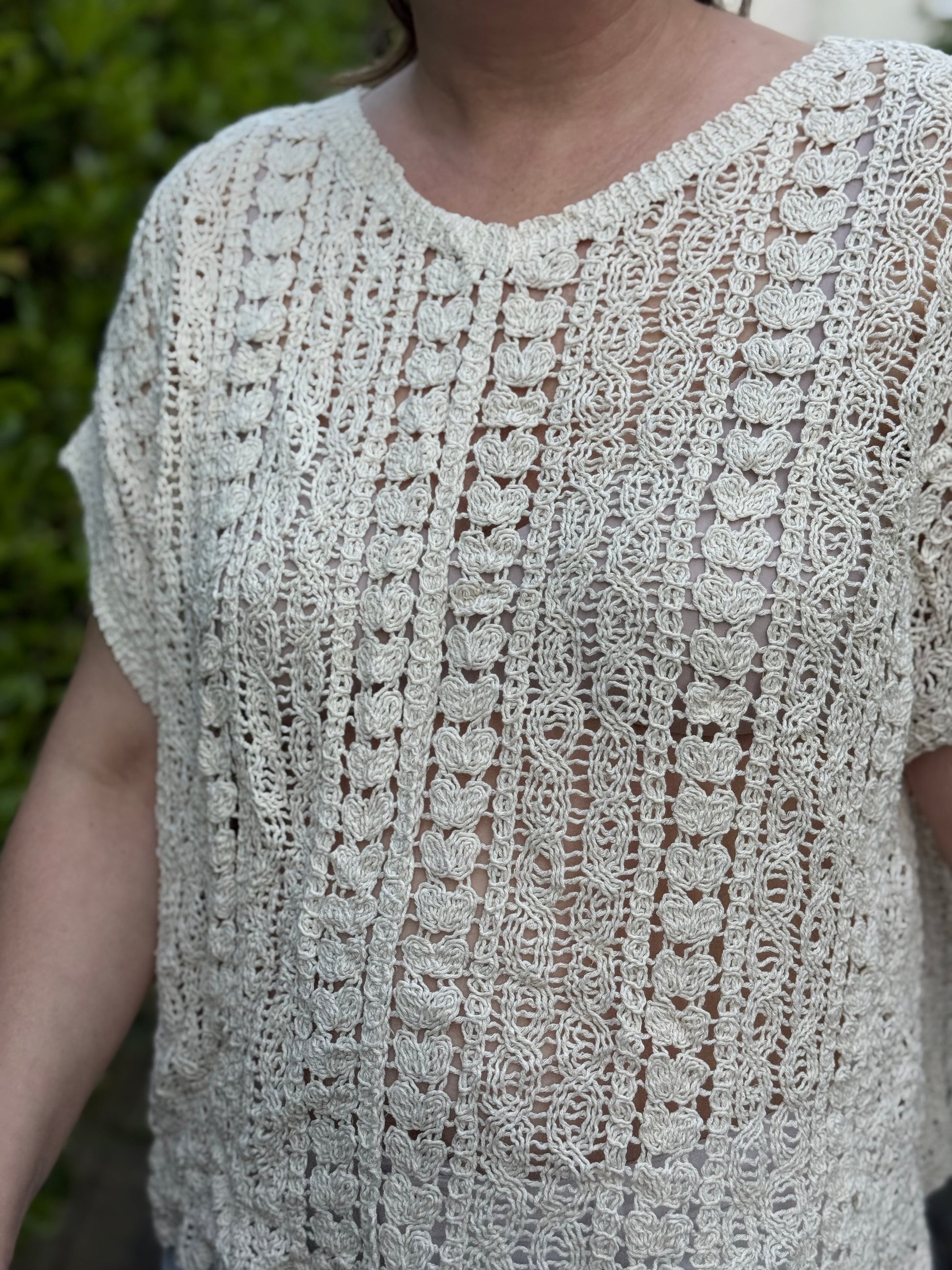Summer Crochet Oberteil mit kurzen Ärmeln beige